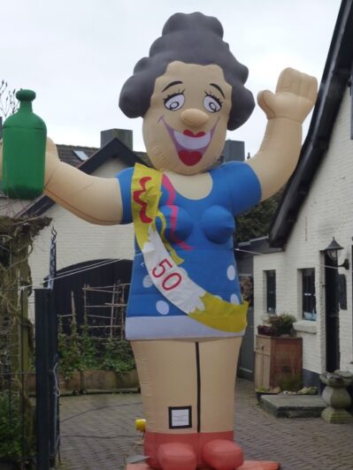 Een mooi bruidspaar Feestend poppen, blikvangers van 4,5 meter hoog met keuze uit verschillende sjerpen. 25,40,50 en 50 jaar maar kan natuurlijk ook zonder.