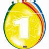 Ballonnen in verschillende kleuren bedrukt met de leeftijd 1.