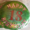 18 Jaar BUTTON BROCHE HAPPY BIRTHDAY groen 55mm.