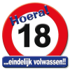 18 jaar HULDEBORD – verkeersbord – HOERA 18 JAAR 50X50 CM.