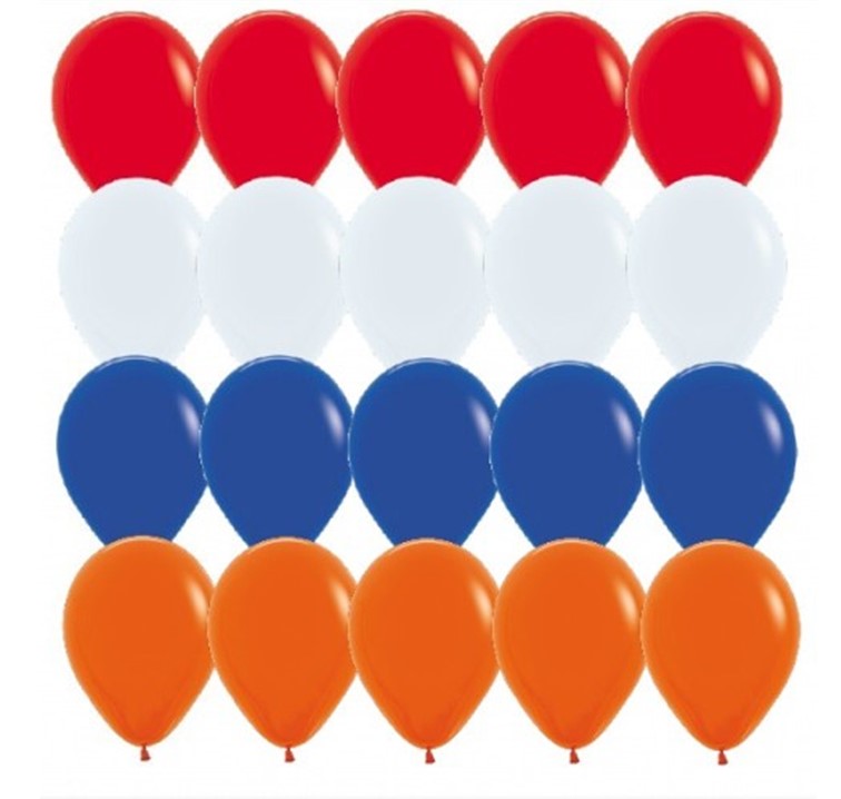 20x rood wit blauw oranje ballonnen – Koningsdag.