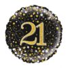 21 jaar Folieballon Sparkling Holographic glitter zwart-goud. -18 inch=45 cm.