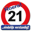 21 JAAR HULDEBORD – verkeersbord – HOERA 50X50 CM.