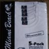 5-pack T-Shirts wit Miami Beach American style.100% katoen met een mooi aansluitende boord. maten M, L, XL en XXL voorraad zie maten