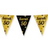 2x Slinger “Happy Birthday Sarah 50”7031218 – een feestelijke vlaggenlijn in classy zwart-goud stijl