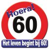 60 JAAR HULDEBORD – HOERA 60 – 50X50 CM.HET LEVEN BEGINT BIJ 60!