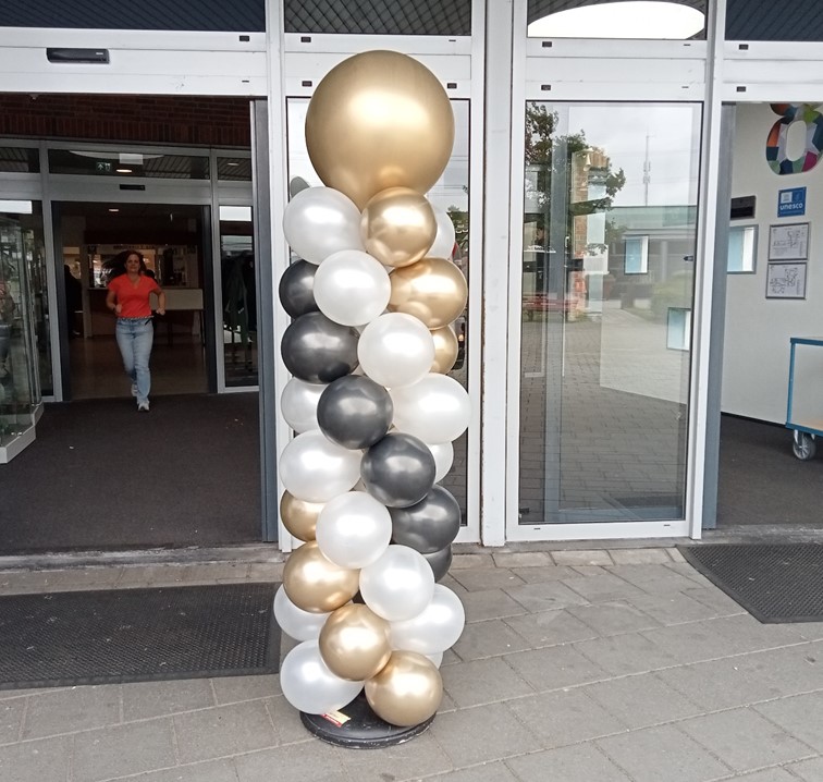 Ballonnenpilaar met speciale reflex spiegel TOP ballon 2.20 mtr hoog. of(50, 25, baby boy or girl, 16 e.d.)