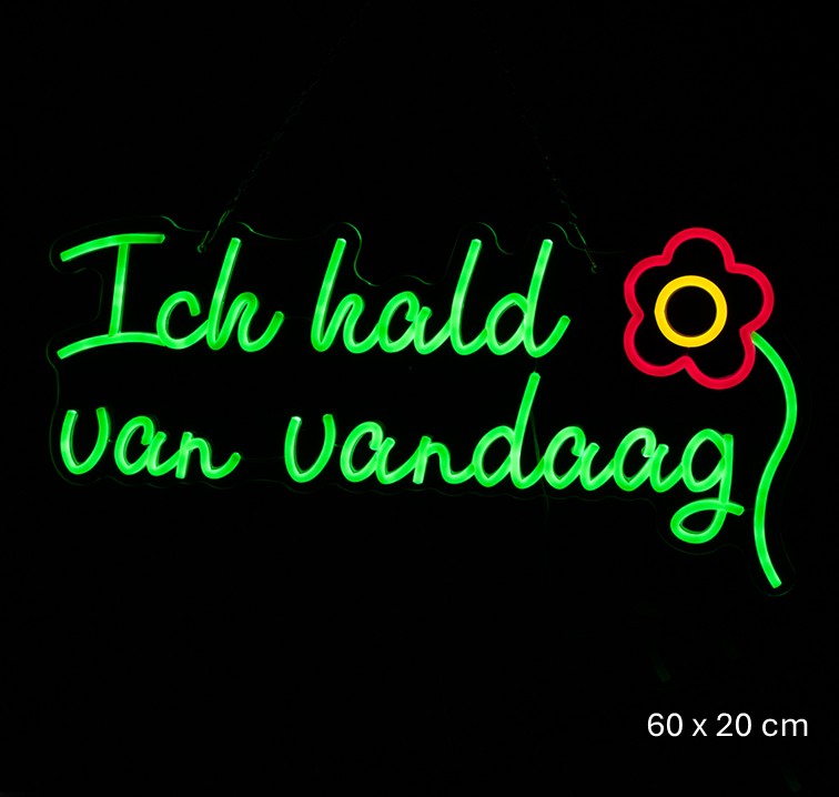 • Vorm: Meestal verkrijgbaar als LED neon bord, met een stroomadapter en ketting om op te hangen.