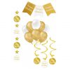 Feestversiering verjaardag pakket 5 delig goud-wit.