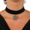 Halsbandje fluweel met hanger edelweis zilverkleurig.