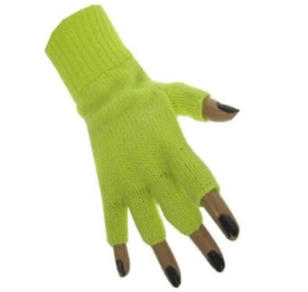 Handschoenen vinger-loos fluor geel voor carnaval of ander verkleedfeest.