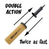 Een professionele dubbele handpomp die opblaast bij zowel een duw- als een trekbeweging.