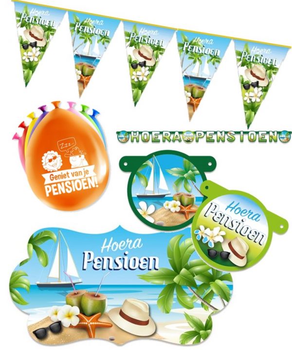 Pensioen pakket feestversiering – feestartikelen Pensioen 5 delig.