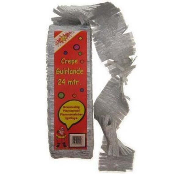 Slinger crepe guirlande zilver brandvertragend 24 mtr.