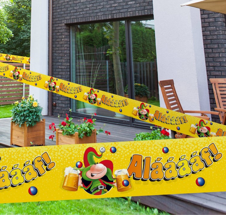 Markeerlint Alaaf geel 15 mtr. Afzetlint van plastic met Alaaf geel van ongeveer 15 mtr lang en 7,5 cm breed.