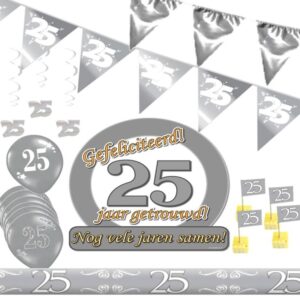 25 jaar getrouwd XS 3 delig versieringpakket - zilveren bruiloft. 12.55