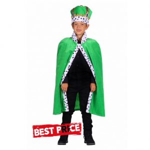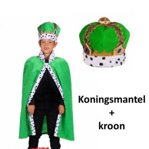Koningsmantel kind Groen inclusief kroon lengte 80 cm. 20.75