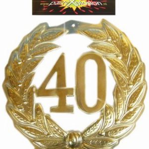 Jubileumkrans 40 jaar robijn plastic pvc goud - 24cm. 2.75