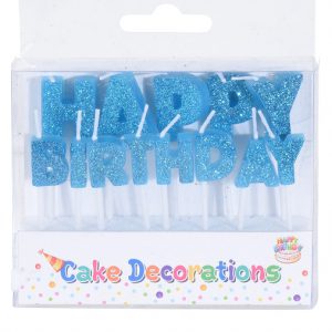 Taart kaarsjes verjaardag HAPPY BIRTHDAY letters BLAUW. 2.95