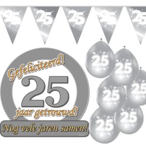 25 jaar getrouwd XS 3 delig versieringpakket - zilveren bruiloft. 12.55